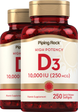 1614<p>Vitamin D is commonly associated with being the “sunshine vitamin” since it is produced by the body once exposed to the sun’s rays. It’s a vital nutrient that unfortunately we don’t get enough of when the colder weather comes around, and sunlight is more scarce. To ensure your levels are always optimal, Piping Rock’s High Potency Vitamin D3 provides a convenient way to intake this substance daily. Supplying you with 5000 IU per quick-release softgel, you can rest assured, sun or not, you’re covered.</p> <h2 class="body-more-heading-third"><strong>Piping Rock’s Promise:</strong></h2> <p>We proudly offer you our ever-growing selection of Vitamin & Supplement products designed to help you achieve your wellness goals at the lowest cost in the industry! The beauty lies in the depth of our assortment. Piping Rock carries hundreds of Vitamin & Supplement products for Men & Women’s Health. We offer capsules, powders, softgels, liquids, organic formulas and much more. Our products are stacked with premium ingredients, sourced from all over the globe. Our robust product line is evolving every day to meet your wellness needs!</p> <h2 class="body-more-heading-third"><strong>About Piping Rock’s Quality:</strong></h2> <p>You’ve found your One-Stop-Shop for Vitamins & Supplements at Piping Rock. Our formulas are crafted in our own “GMP Certified” manufacturing facilities. We verify Piping Rock products with third-party, FDA-registered agencies to ensure quality & purity. Each product goes through hundreds of checks, in-process and post-production. Furthermore, we can assure you that everything that is on our label is consistent with what goes into our Vitamins & Supplements. We guarantee purity, potency, safety and innovation in everything we do.</p>High Potency Vitamin D3, 5000 IU, 250 Quick Release Softgels, 2 Bottles